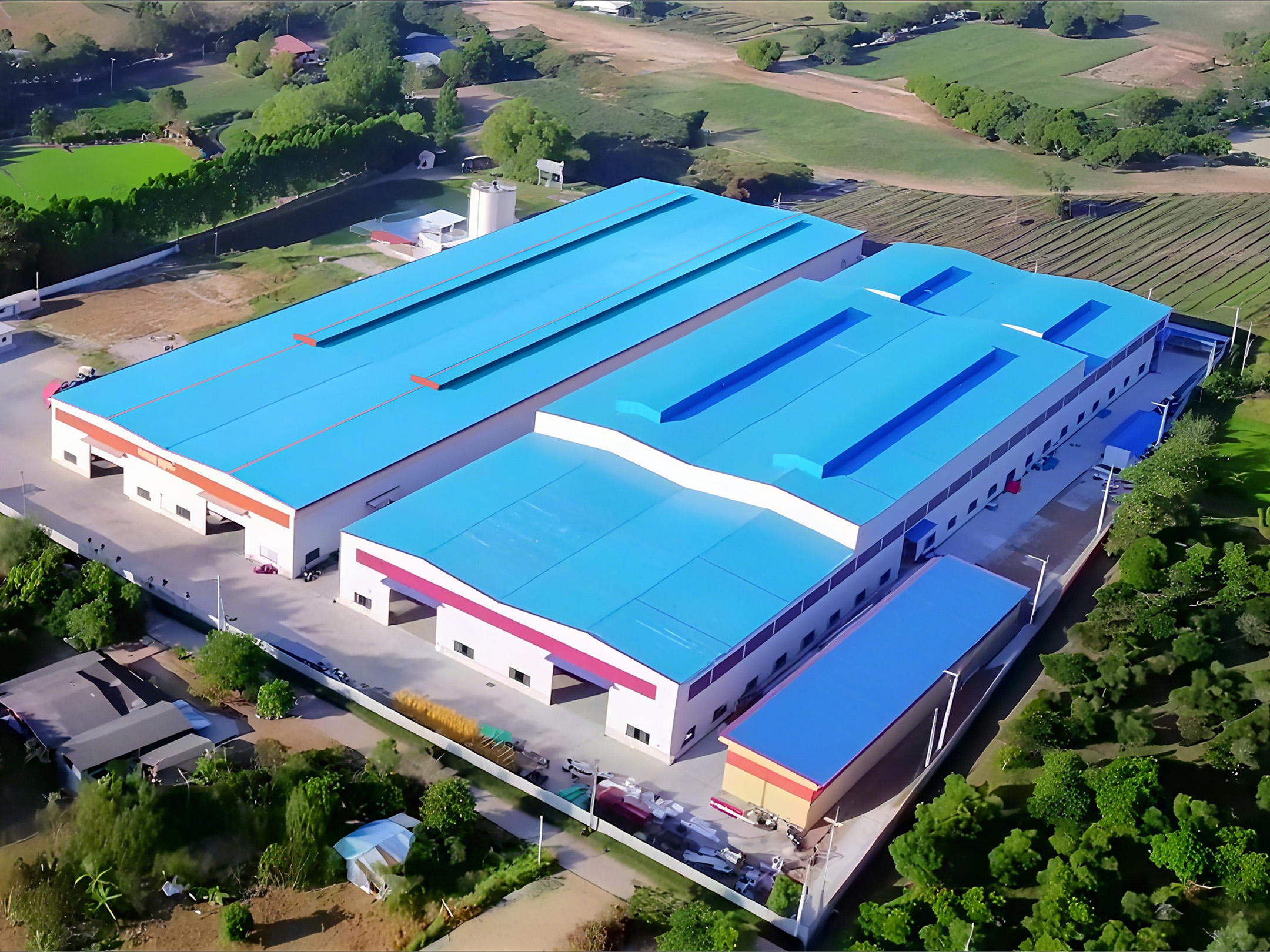 允兴(泰国)股份有限公司位于泰国北柳、建筑面积达18000平方米的钢结构厂房与办公楼项目,以包工包料方式承建 。