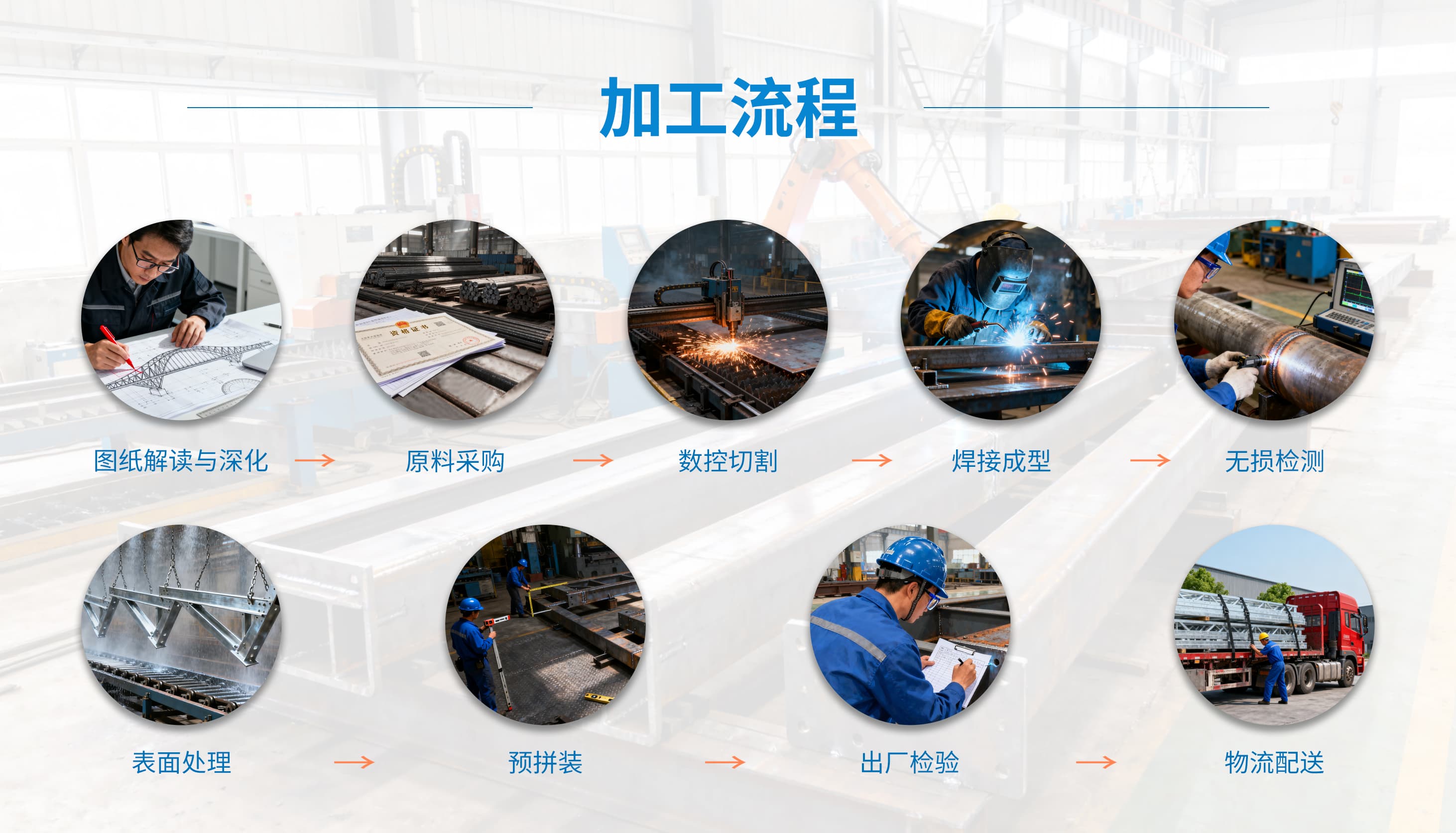 钢结构加工一级资质 + ISO 认证 | 承接H型钢 / 钢箱梁 / 厂房钢架加工 | 按需生产・全球发货・全周期服务